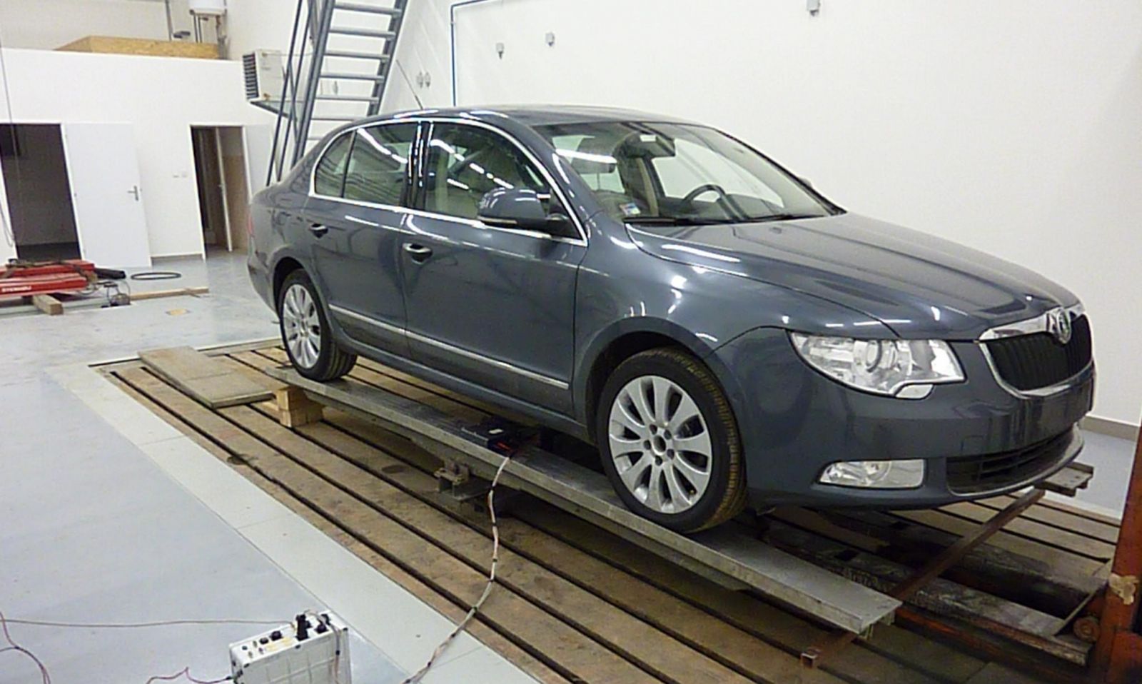 Yaw moment of inertia is one of the important parameters of vehicle. This parameter is necessary to record in many dynamic test reports, is required for computation of dynamic properties of vehicle and is important parameter for control algorithms of vehicle electronic systems. Measurement of mentioned parameter is not possible to realize by common measuring devices but special measurement apparature is required. The device consist of measuring stand, measuring chain and software for data acquisition and evaluation. Measurement is based on principle of torsional pendulum.