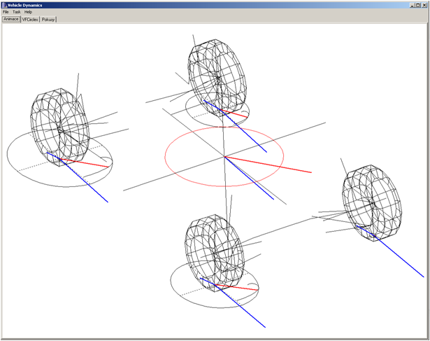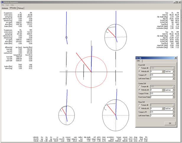 Graphical information about states of individual subsystems of the vehicle (tyres, differentials, springs, beam, ..)